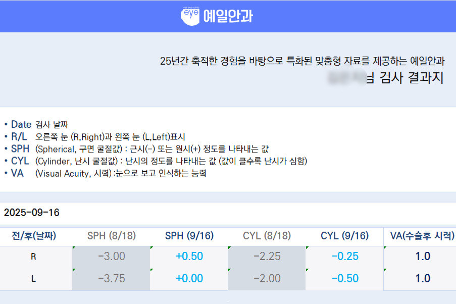 실크라식 했는데요 통증도 없고 하루만에 시력이 좋아져서 현대의학에 감탄하고 수술 해주신 선생님 실력에 감탄 했습니다.