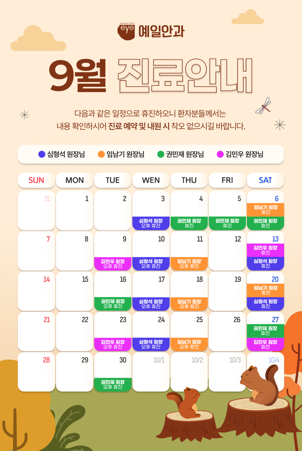 9월 진료일정 안내